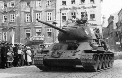 Tanky čs. tankovej brigády 1. ČSAZ v ZSSR na prehliadke v Prahe Zatiaľ čo v septembri a októbri 1944 boli do bojovej činnosti proti nemeckým a maďarským vojskám na území Slovenska nasadené tri vševojskové armády v počte 35 divízií a dve letecké armády, tak v januári až marci 1945 už operovali na našom území vojská siedmych vševojskových armád, jednej tankovej armády a jednej jazdecko-mechanizovanej skupiny v celkovej hodnote 55 až 82 divízií a dve letecké armády. ( administrátor použil mapy a foto z wikipedie ) <<< späť na hlavnú stránku |