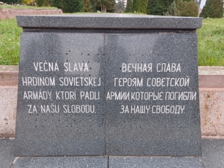 Pamätné tabule a pamätník na sovietskom cintoríne (po "kliknutí" sa foto zväčší) S pochovávaním na cintoríne sovietskych vojakov v meste Zvolen sa začalo v roku 1952. Sú tam po exhumáciách pochovaní padlí v stredoslovenskom kraji a časti západoslovenského kraja, celkom zo 17 okresov. Aj na námestí SNP vo Zvolene bolo pochovaných 156 červenoarmejcov, na pamiatku ktorých je postavený pamätník Sovietskej armády. Rovnako v Banskej Bystrici na námestí SNP bolo pod obeliskom pochovaných 50 vojakov Červenej armády, ktorí boli prenesení na cintorín vo Zvolene.