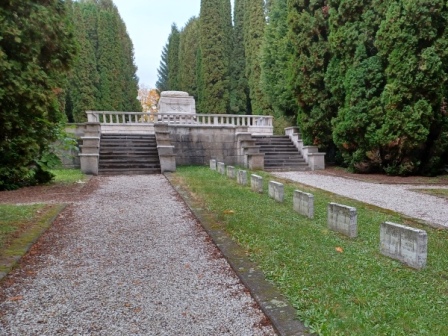 Okolo chodníka zo sovietskeho cintorína sú obojstranne hroby dôstojníkov RKA (po "kliknutí" sa foto zväčší) Po prehliadke cintorína sovietskej Červenej armády účastníci zájazdu prešli k hlavnému pamätníku na cintoríne Rumunskej kráľovskej armády. Po informáciách Viery Nociarovej spoločne položili veniec k pamätníku padlých rumunských vojakov a prezreli si hroby a pamätné tabule v areály ich cintorína: