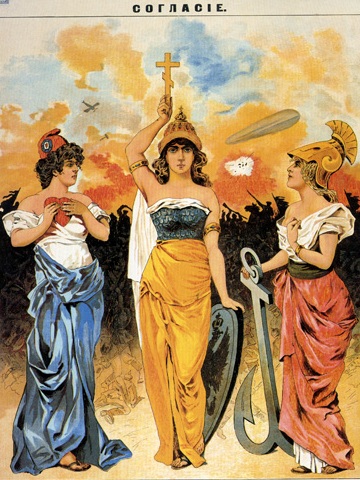 Politická mapa Európy v roku 1914 ( mapka sa po "kliknutí" zväčší ) Súperenie medzi európskymi štátmi sa však stupňovalo z dôvodu narastania až fanatickej národnej hrdosti a túžby prekonať svojich susedov. Nacionalistické opojenie vyústilo do presvedčenia, že vlasť je hodná každej obete. Zabezpečovanie surovín pre priemysel a odbytísk pre jeho výrobky sa európske krajiny snažili dosiahnuť rozširovaním sfér vplyvu a získavaním nových kolónií. Rastúca rozpínavosť mala zabezpečiť zvyšovanie životnej úrovne ich obyvateľov bez potreby narušiť už jestvujúci poriadok ale súčasne aj zabrániť vzniku vnútorných problémov. Vzostup nacionalizmu neoslabil však európsku solidaritu aj vďaka pestovanému komplexu nadradenosti Európanov voči ostatnému svetu a strachu, že by Európu mohli ohroziť budúce zámorské, najmä ázijské mocnosti. Nemci boli presvedčovaní o kvalitách "ich" armády ( videoklip je prevzatý z You Tube) Súperenie o vplyv a prestíž však Európanom nebránilo uzatvárať medzi sebou spojenectvá pre prípad vypuknutia vojny. Najdôležitejšími boli Trojspolok a Trojdohoda. Trojspolok vytvorili v roku 1882 Nemecko, Rakúsko-Uhorsko a Taliansko. Trojdohodu uzatvorili Veľká Británia, Francúzsko a Rusko. Aj keď si vojnu medzi sebou neželali, nesnažili sa jej vôbec zabrániť. Pokladali ju za krajný, ale legitímny politický prostriedok na presadenie sa v medzinárodnom súperení. Vojenská sila bola považovaná za najlepší prostriedok na dosiahnutie národných záujmov. Zbrojenie sa preto stalo prioritou všetkých európskych veľmocí. Najrýchlejšie sa na vojnu pripravovalo Nemecko, ktoré sa k deleniu sfér vplyvu a kolónií dostalo až po zjednotení v roku 1871.